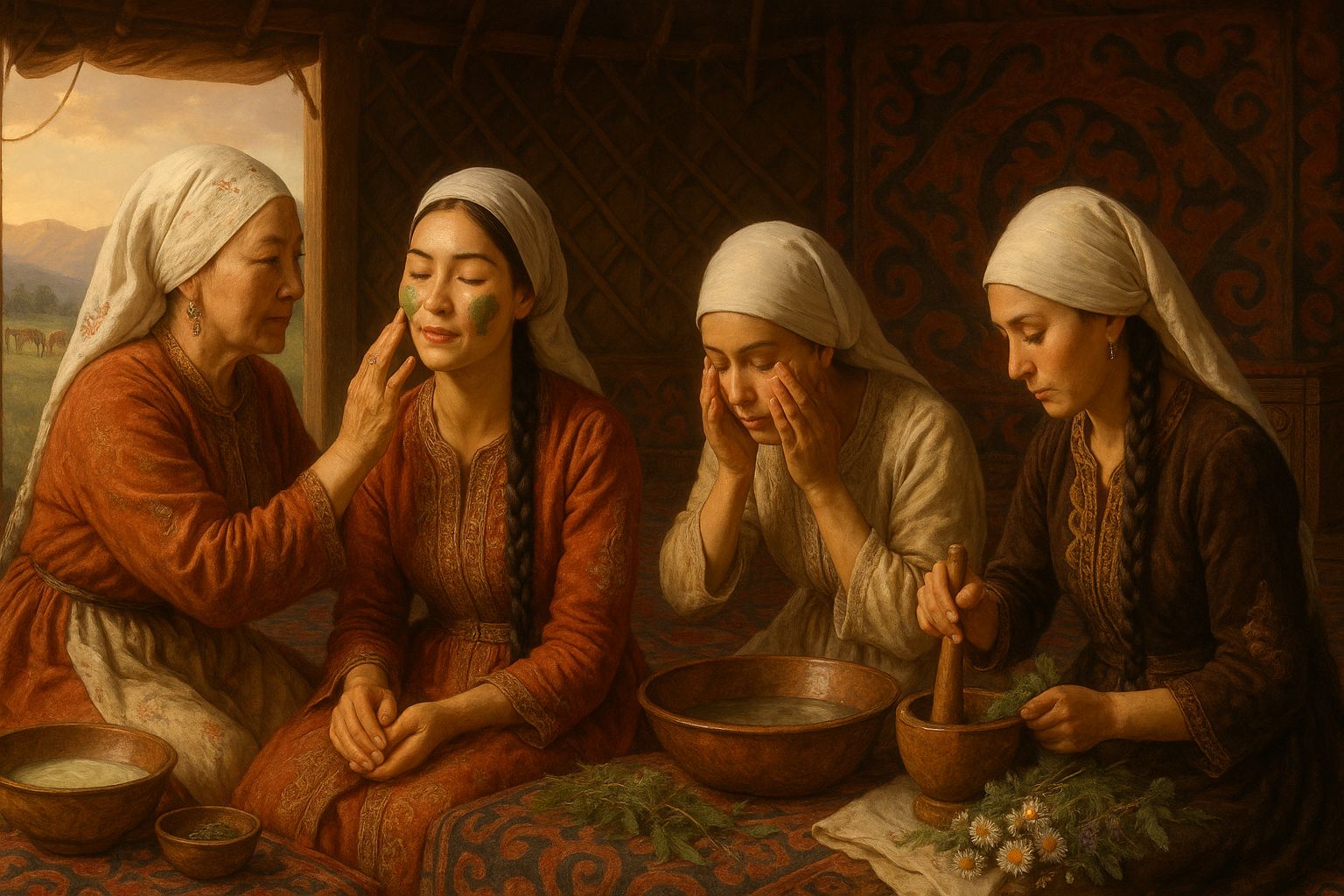 В былые времена уход за собой у казахских женщин был простым, но продуманным и гармоничным. Всё вокруг было естественным: воздух чистый, вода прозрачная, продукты натуральные. Женщины жили в полном согласии с природой и её ритмами, подчиняясь биологическим часам. С заходом солнца юрты погружались в тишину, а на рассвете жизнь вновь пробуждалась. Такой распорядок сам по себе сохранял здоровье, спокойствие и свежесть лица.