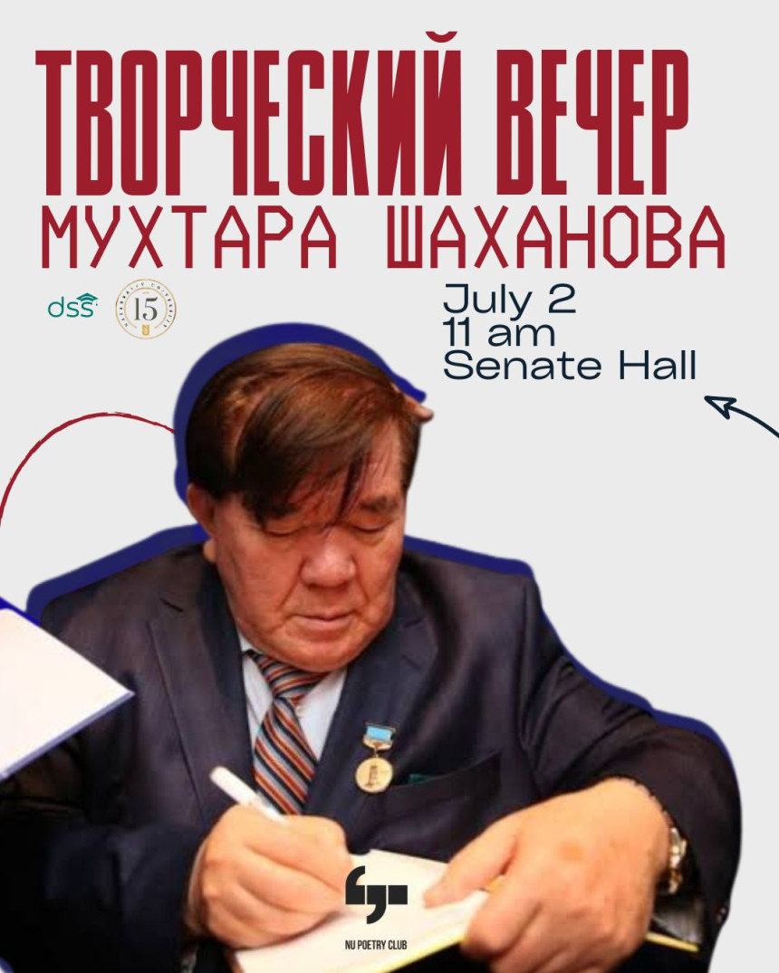 2 шілде күні сағат 11:00-де Астана қаласындағы Nazarbayev University-де ақын, қоғам қайраткері, Қазақстанның халық жазушысы Мұхтар Шахановтың шығармашылық кеші өтеді. Іс-шараны университет жанындағы NU Poetry клубы ұйымдастырады.